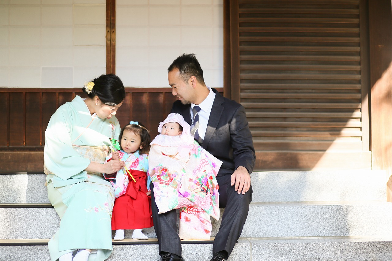お宮参りだと写真館らしいスタンダードな家族写真も欲しいですよね。