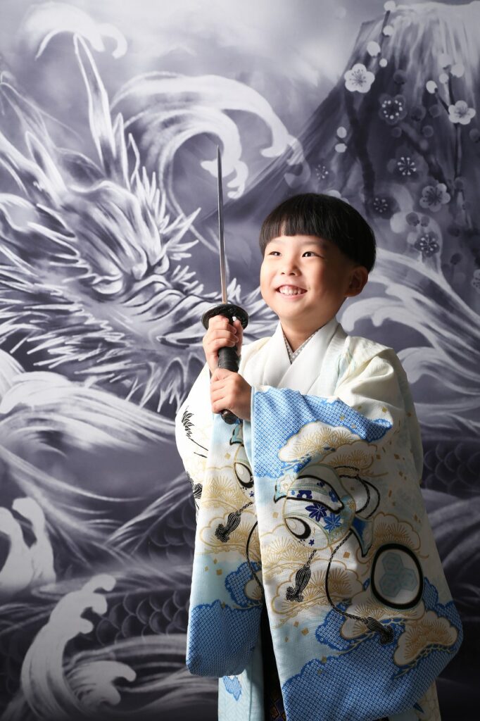 さすが5才。七五三の象徴である千歳飴を持ち、なんとも凛々しい。