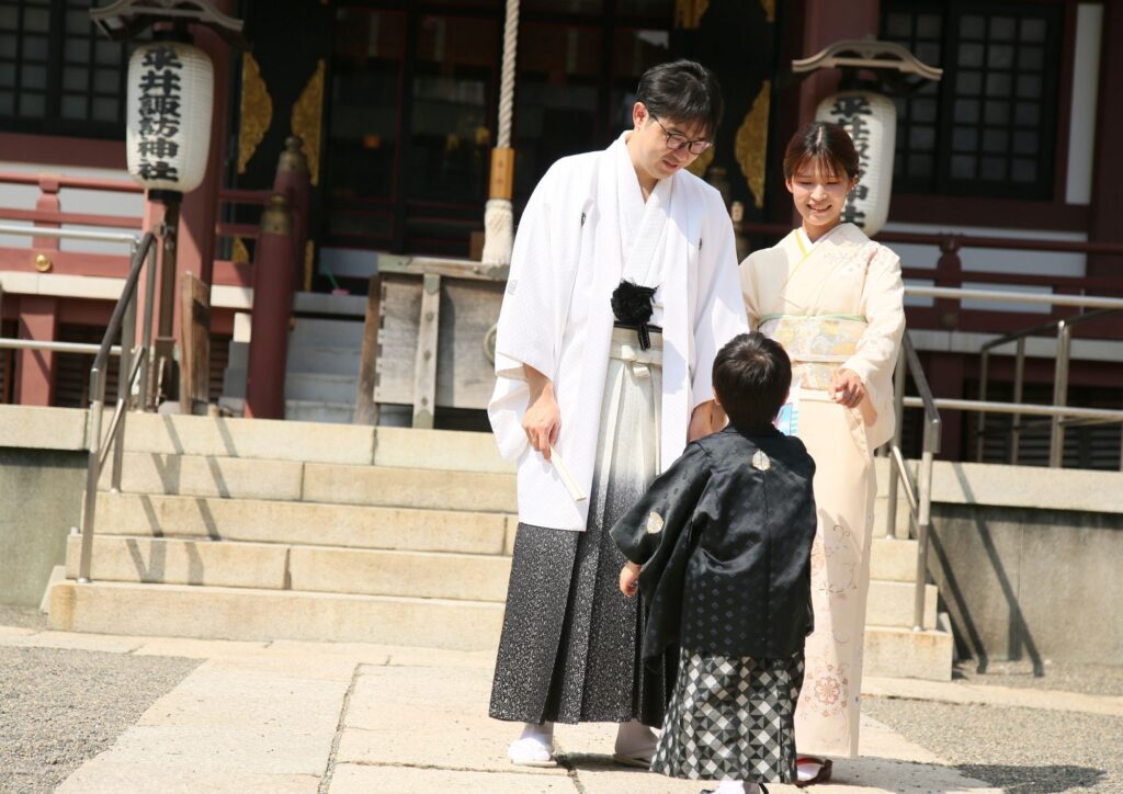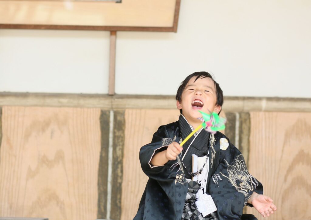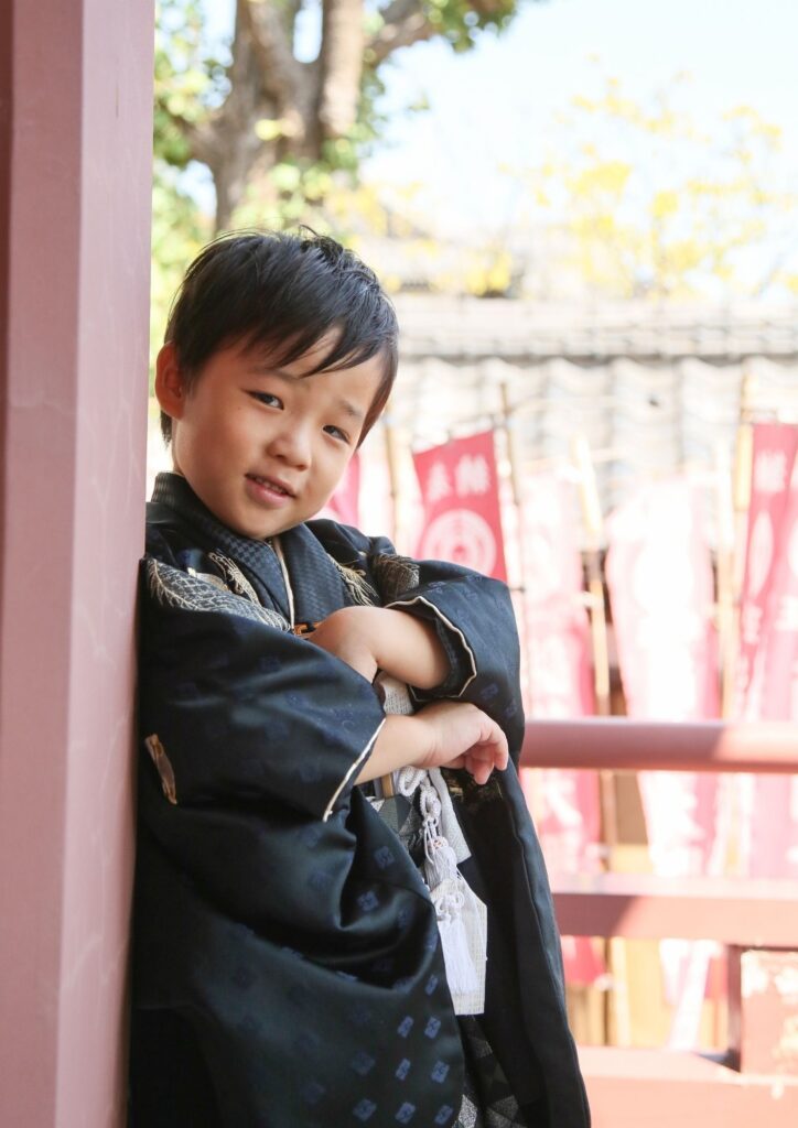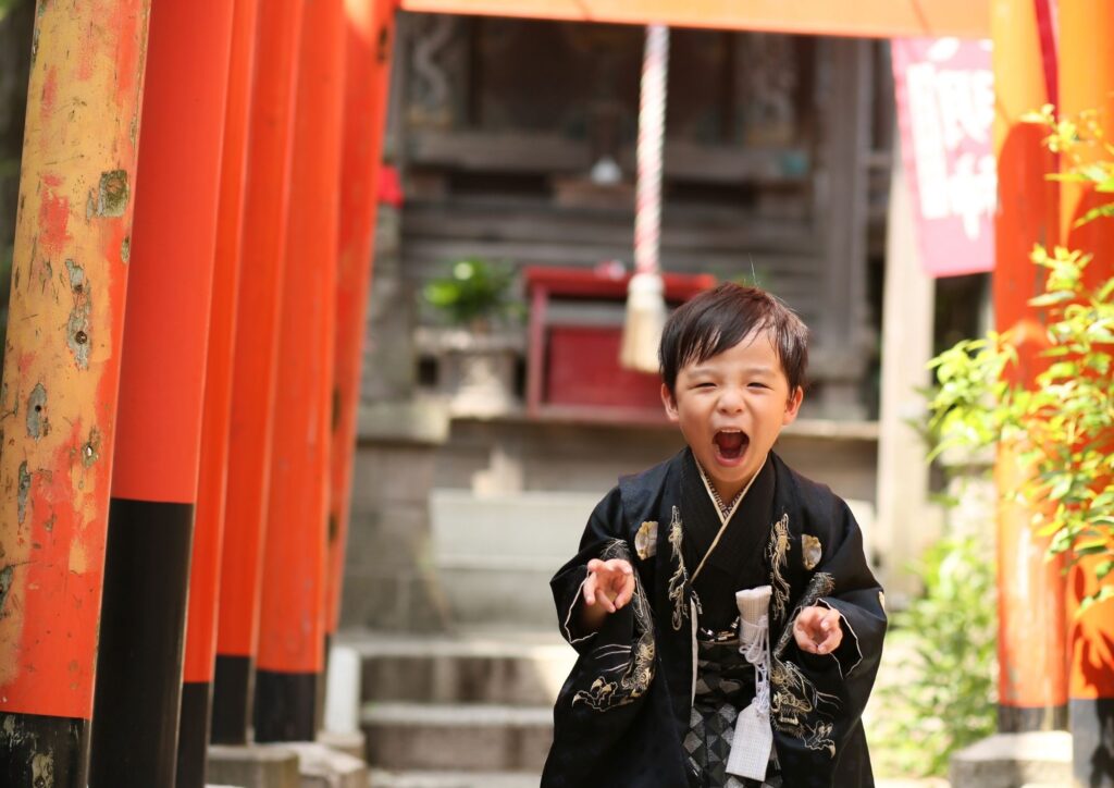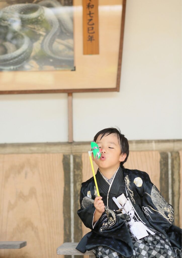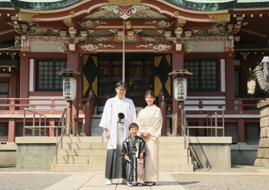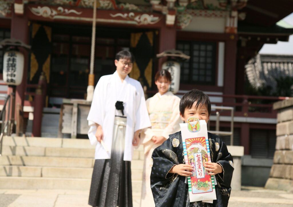 社殿をバックにしっかり七五三らしいお写真もお撮りします
