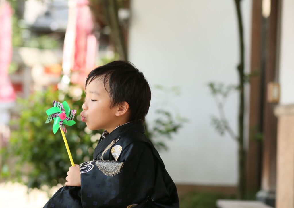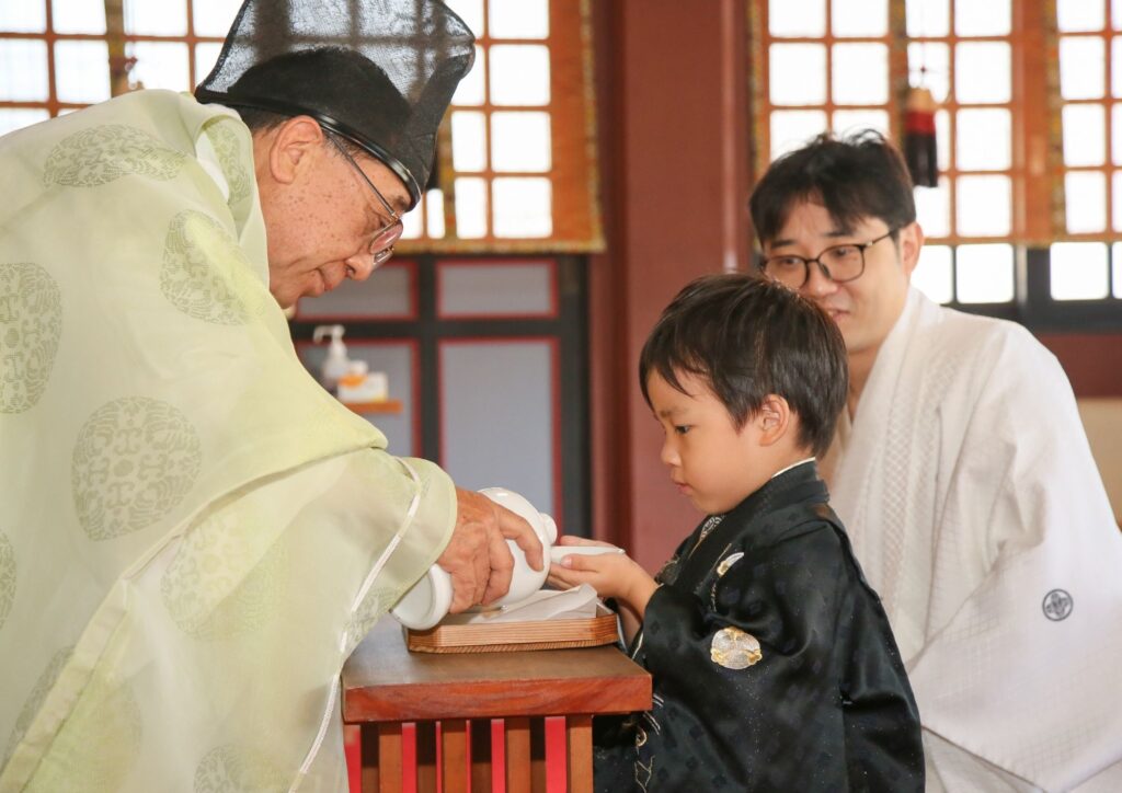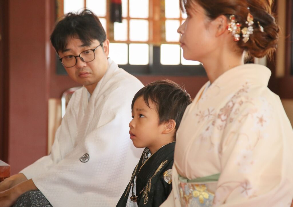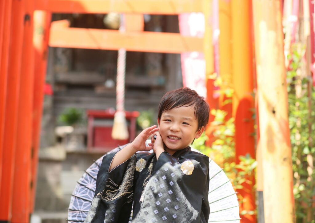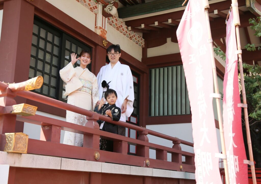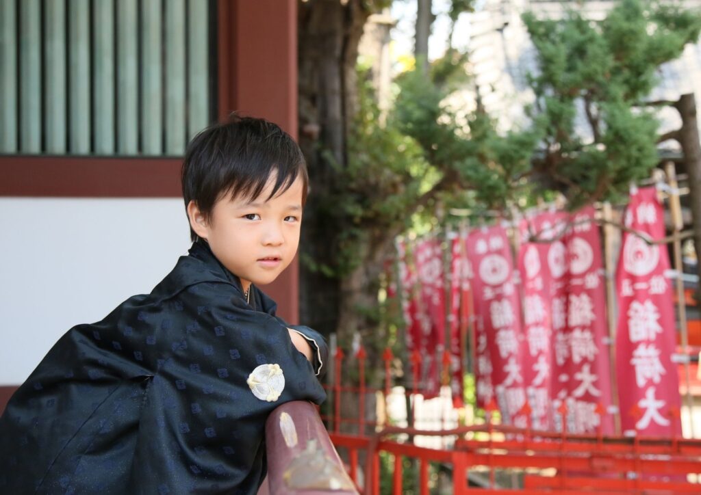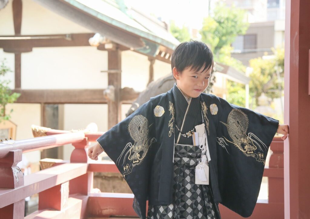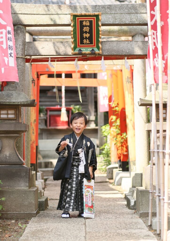 社殿をバックにしっかり七五三らしいお写真もお撮りします
