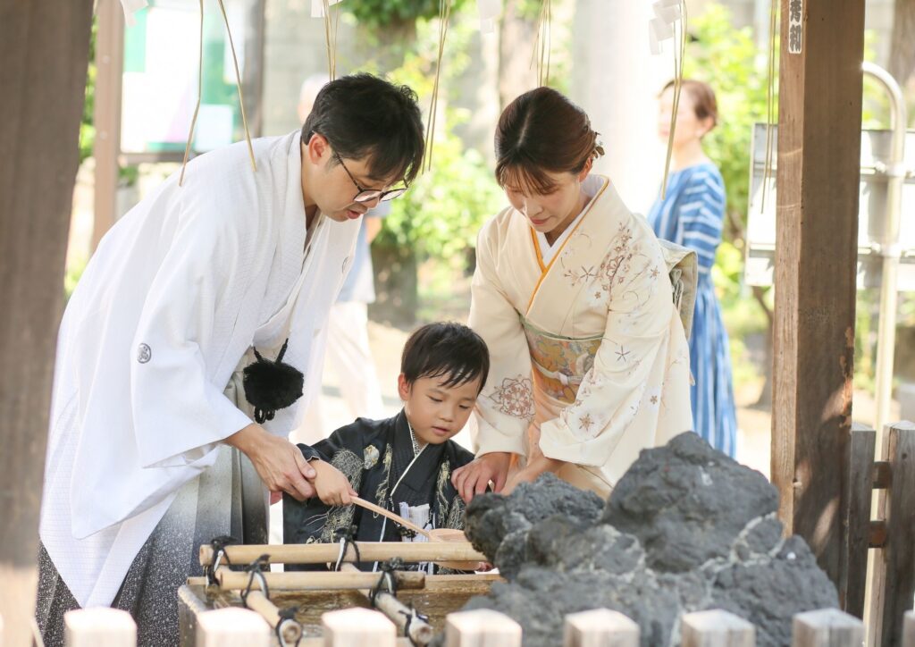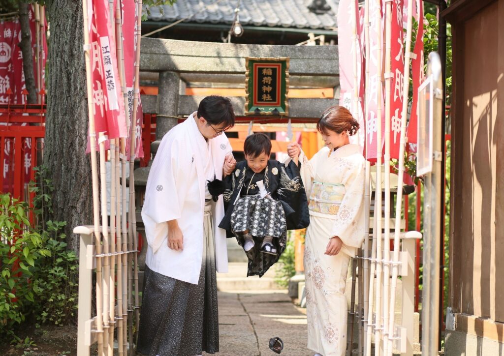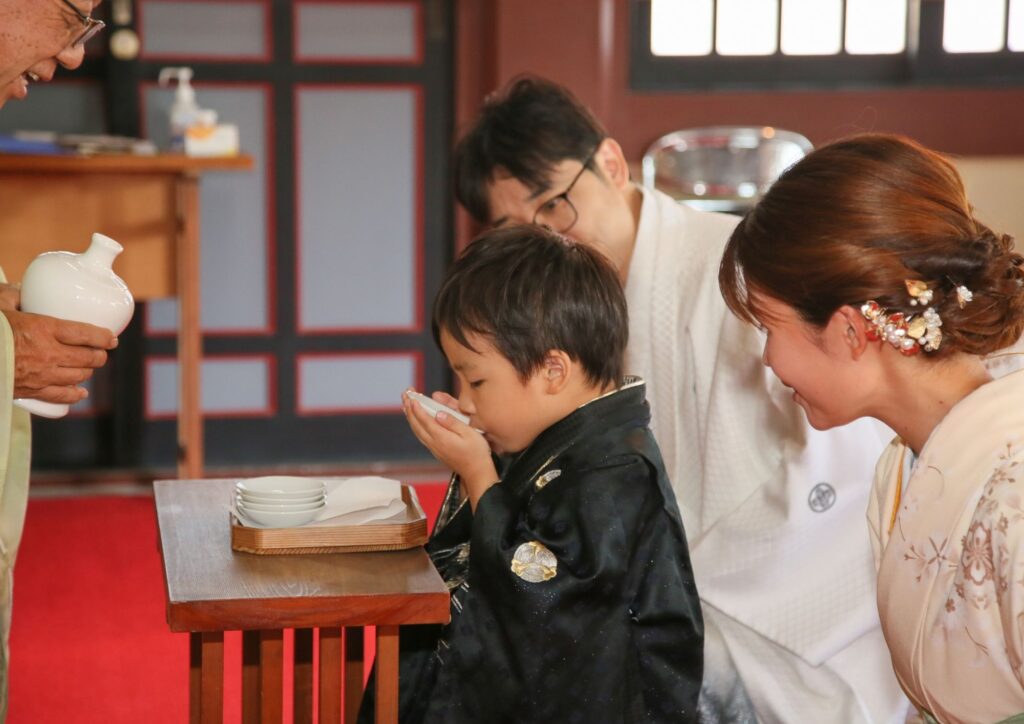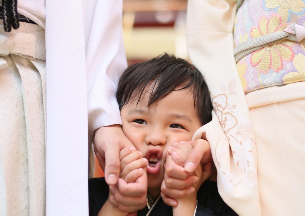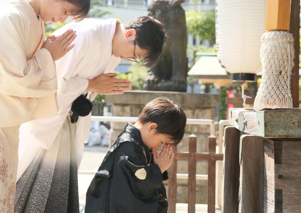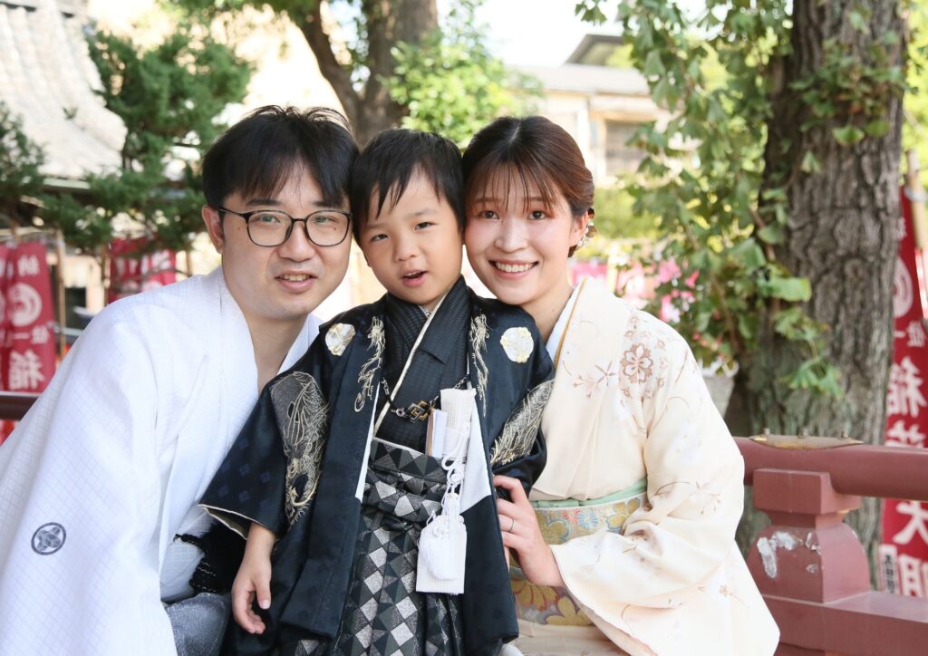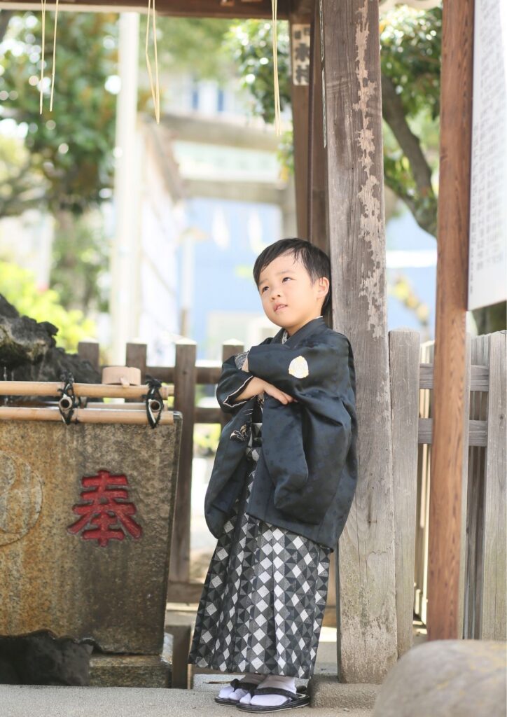 社殿をバックにしっかり七五三らしいお写真もお撮りします