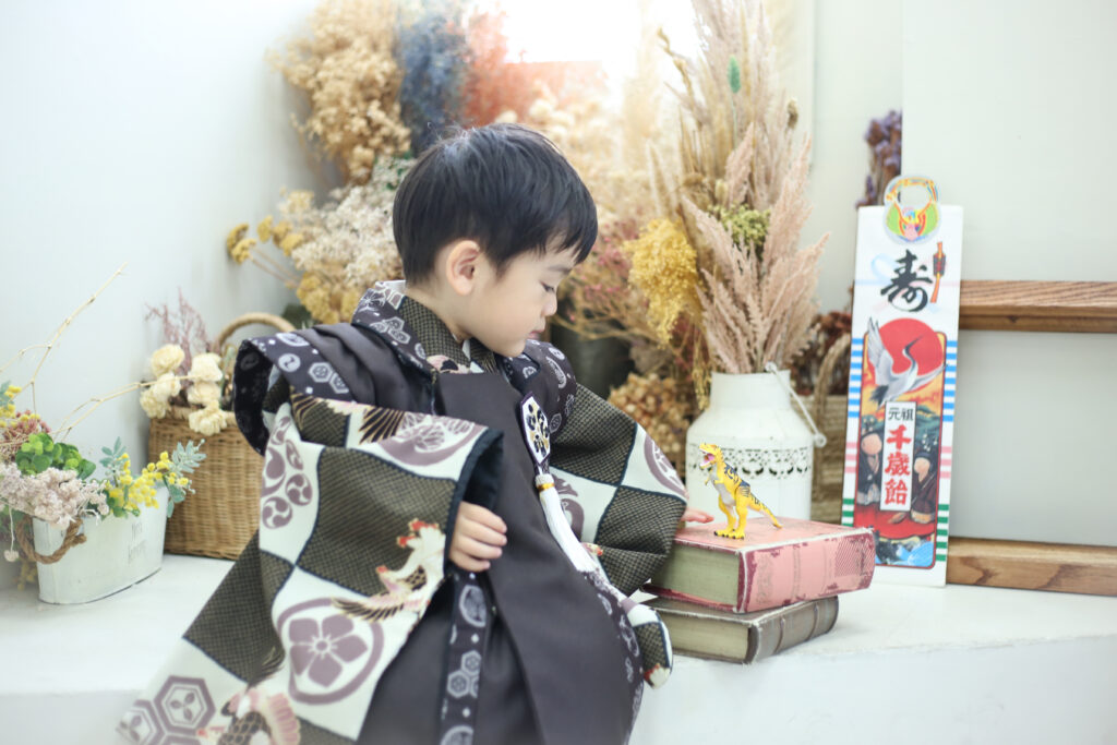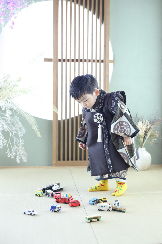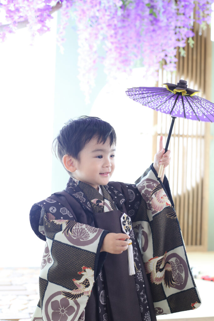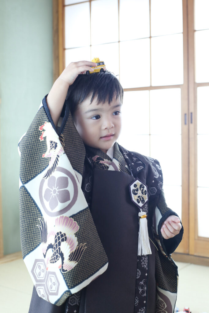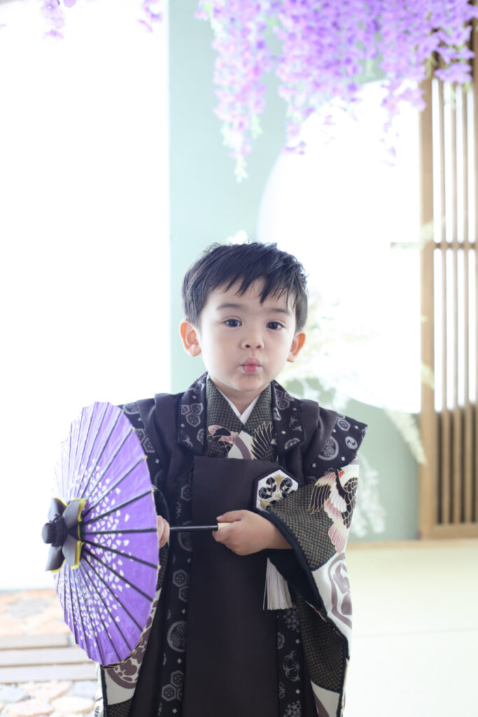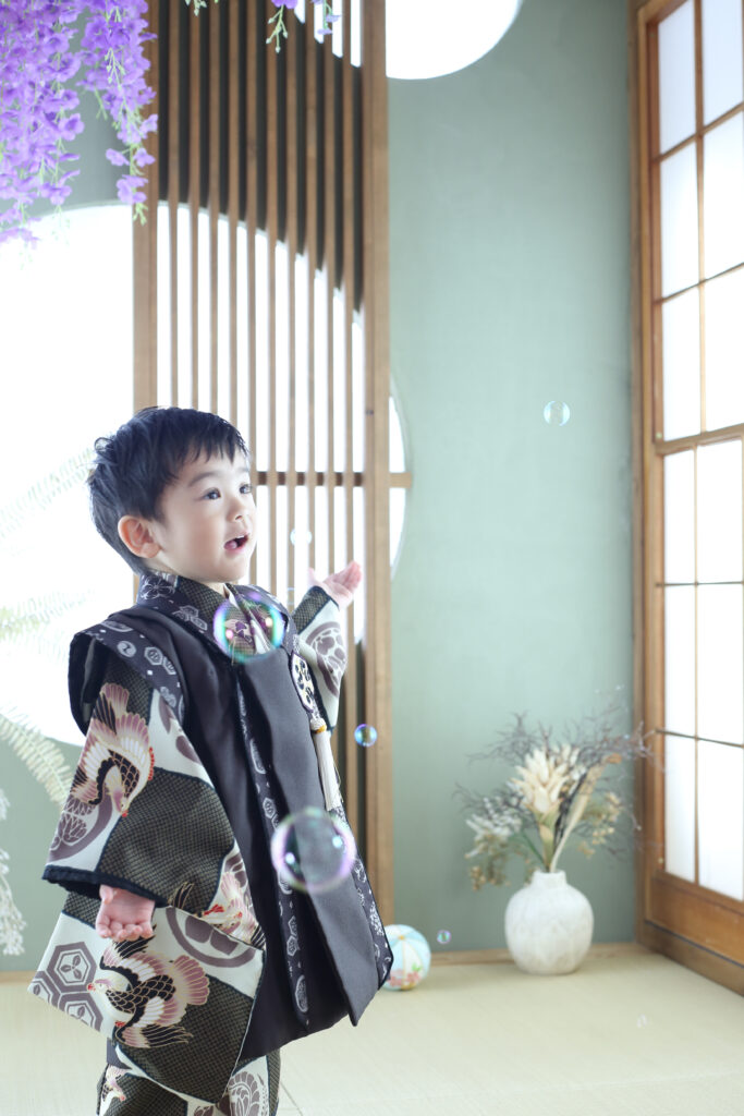 こんな感じで3才の男の子もお着物を着て七五三、とってもカワイイですよ~