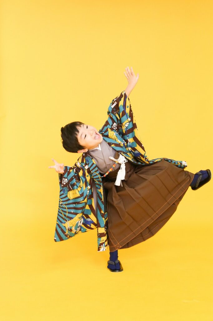 大好きな恐竜がデザインされた着物をチョイスしたので、