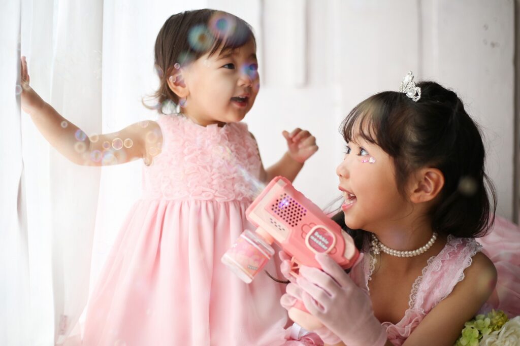 お姉ちゃんの膝の上でシャボン玉だったかな?
