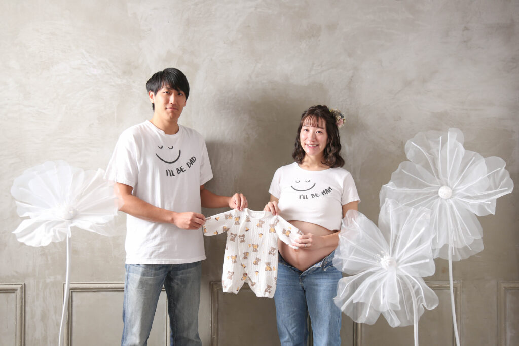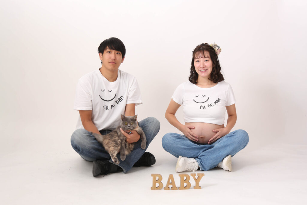 平日はTシャツ追加が無料です! ボトムはご用意いただくか、マタニティドレスのスカートのままで撮ります。