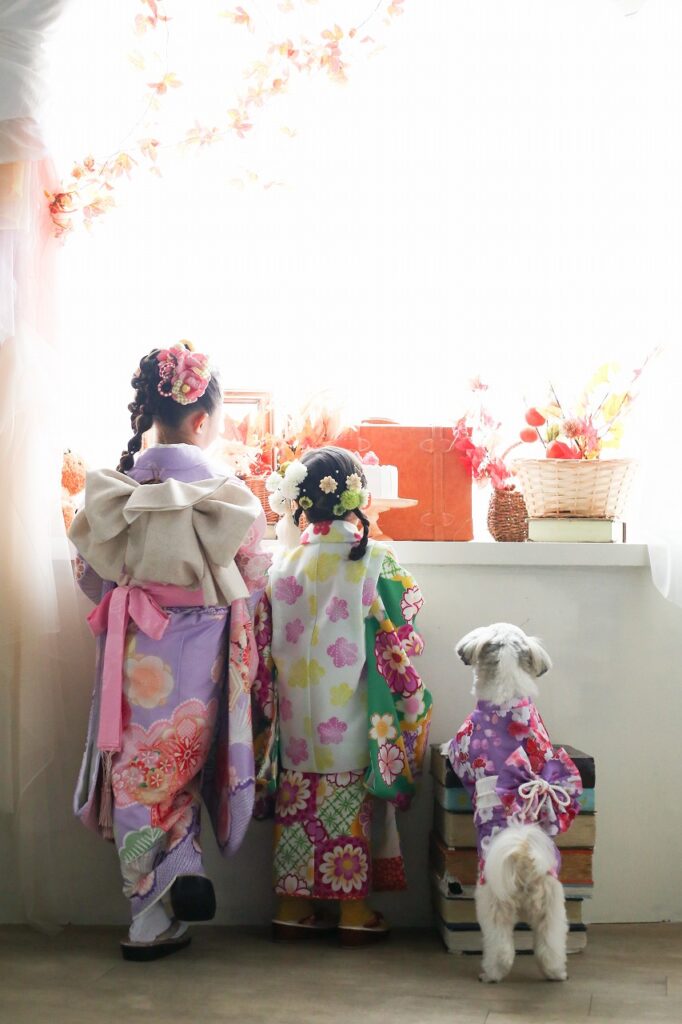 家族写真。ママパパも、そしてワンちゃんも着物。