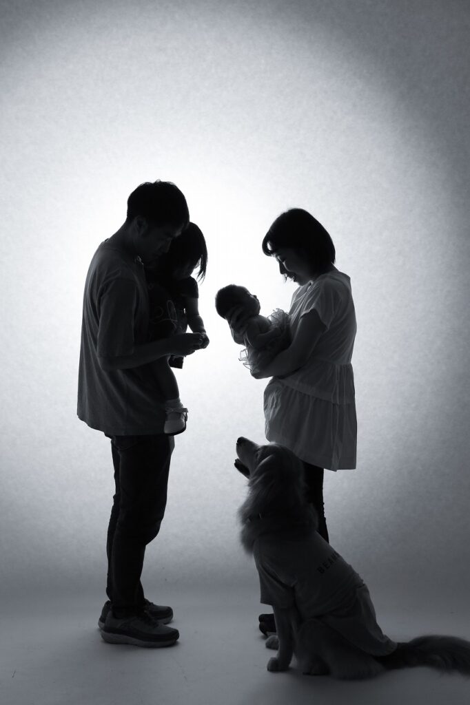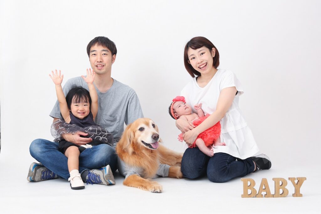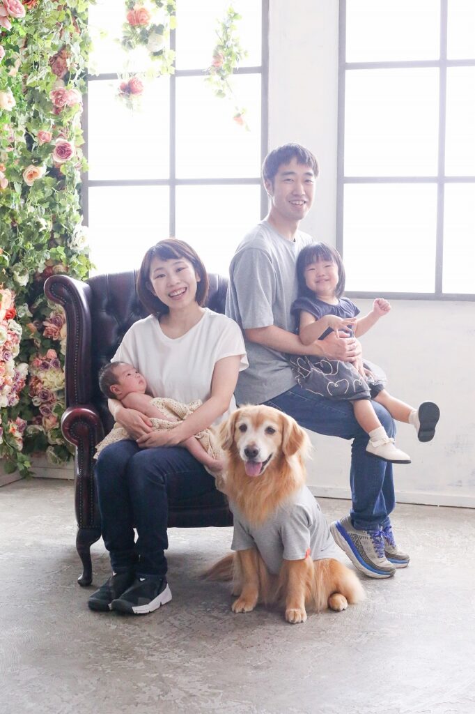 アポロもちゃんとお座り出来て、みんなで集まった家族写真
