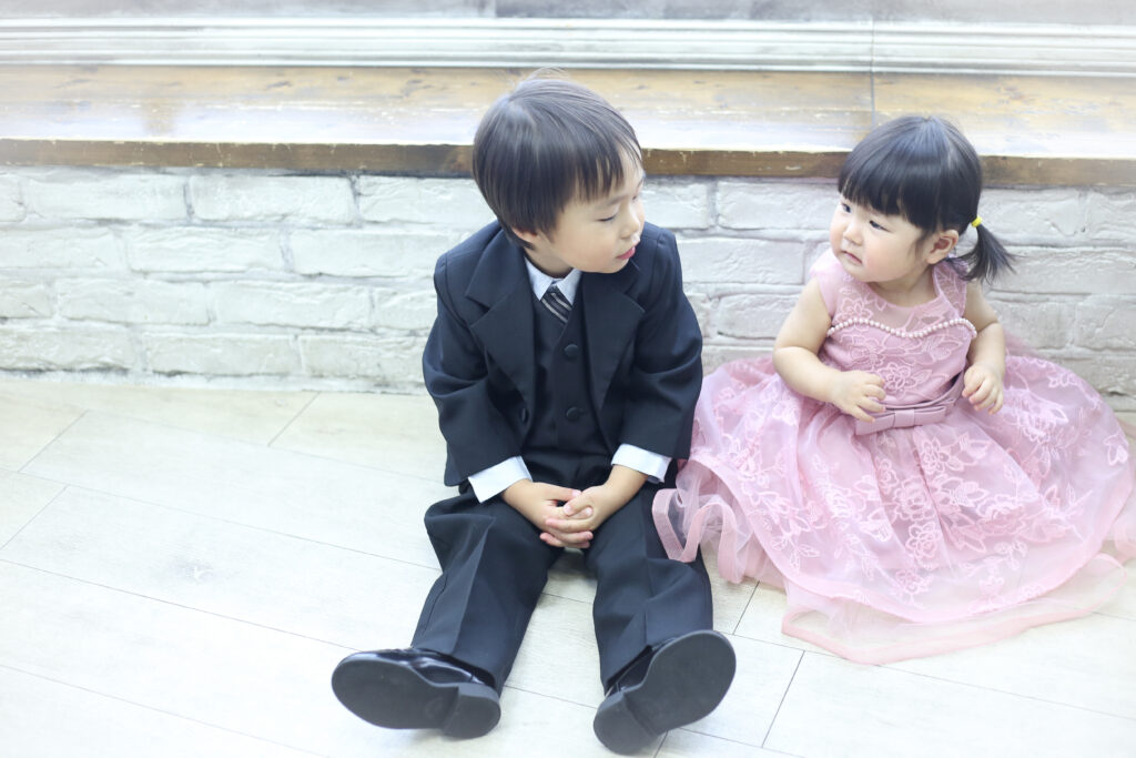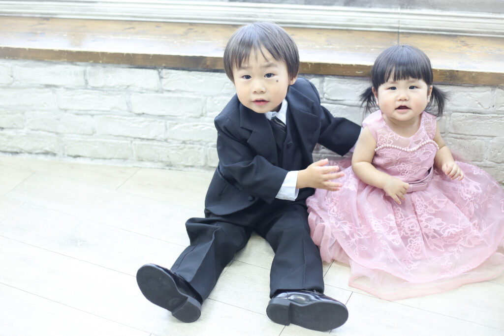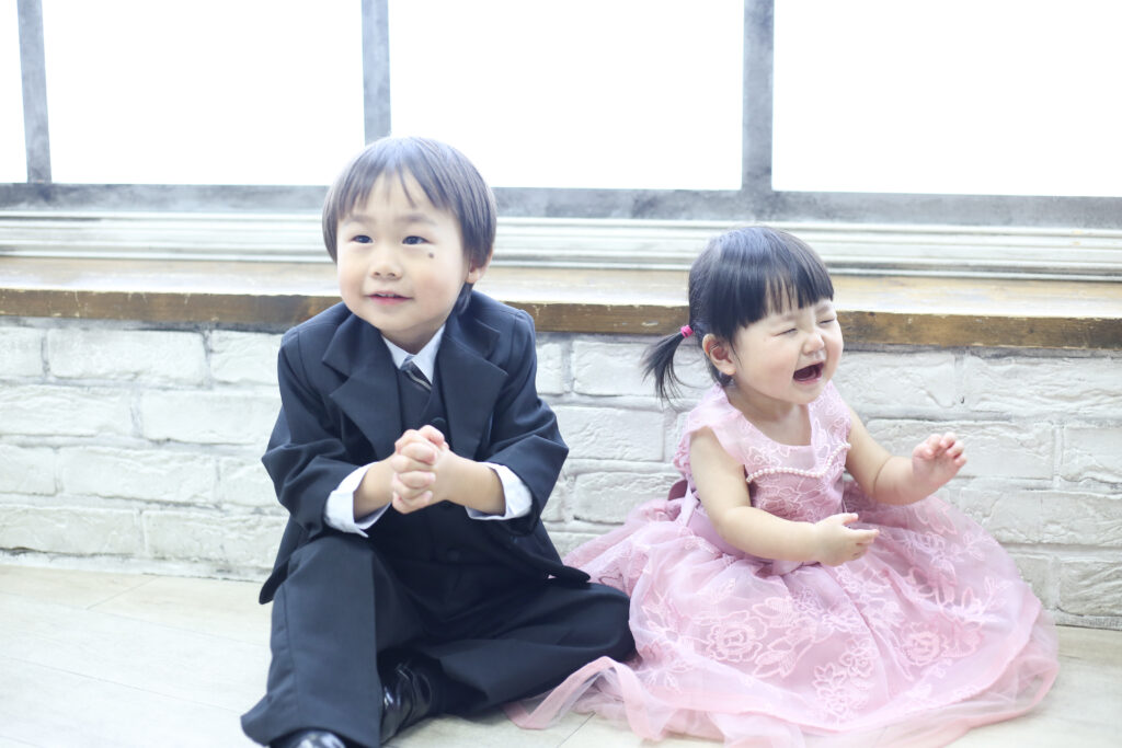 お兄ちゃんと一緒にも撮ります。泣いてる? 笑っている?