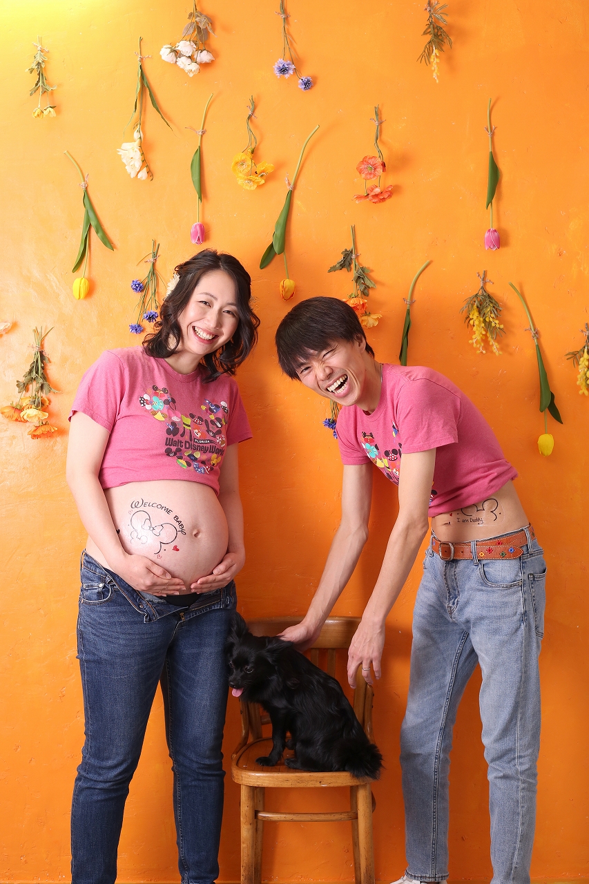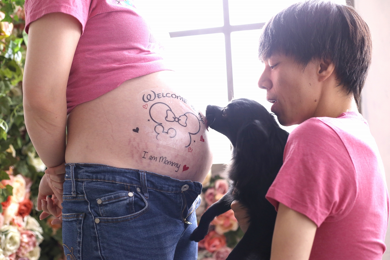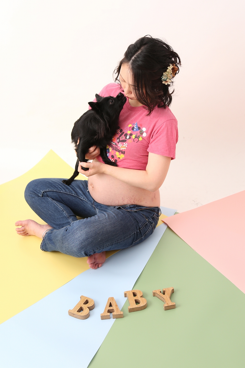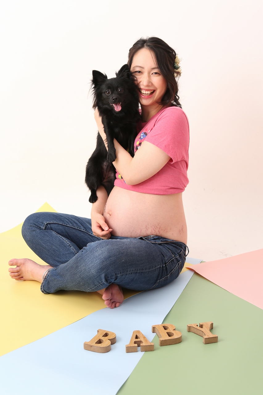 ワンちゃんお腹にチューしてくれてますね、楽しみだね