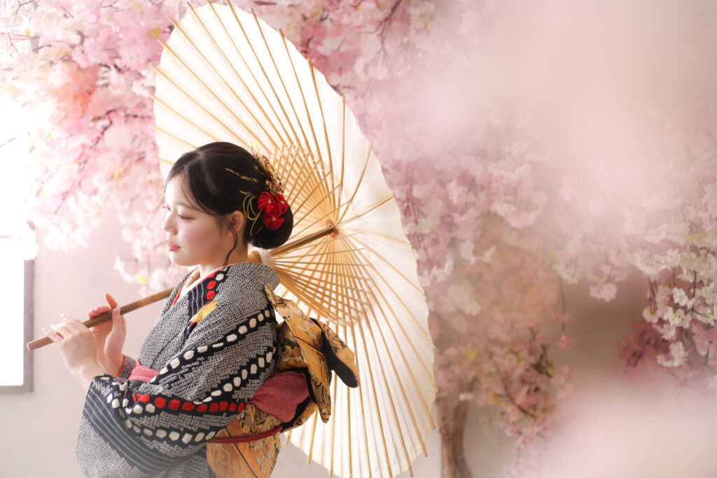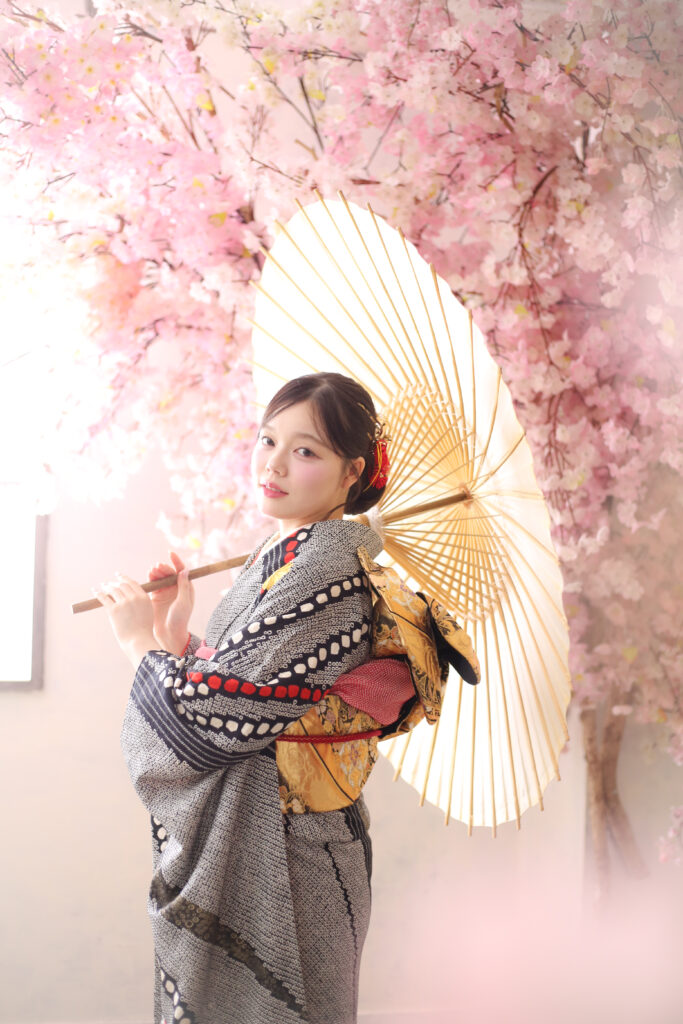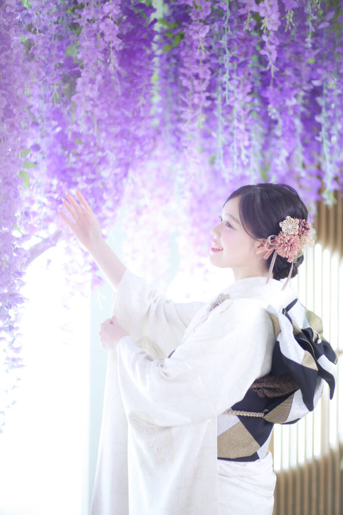 ウェディングスタジオ、洋風なスタジオですけど、桜があることによって和装撮影もかなり撮りやすくなりました。