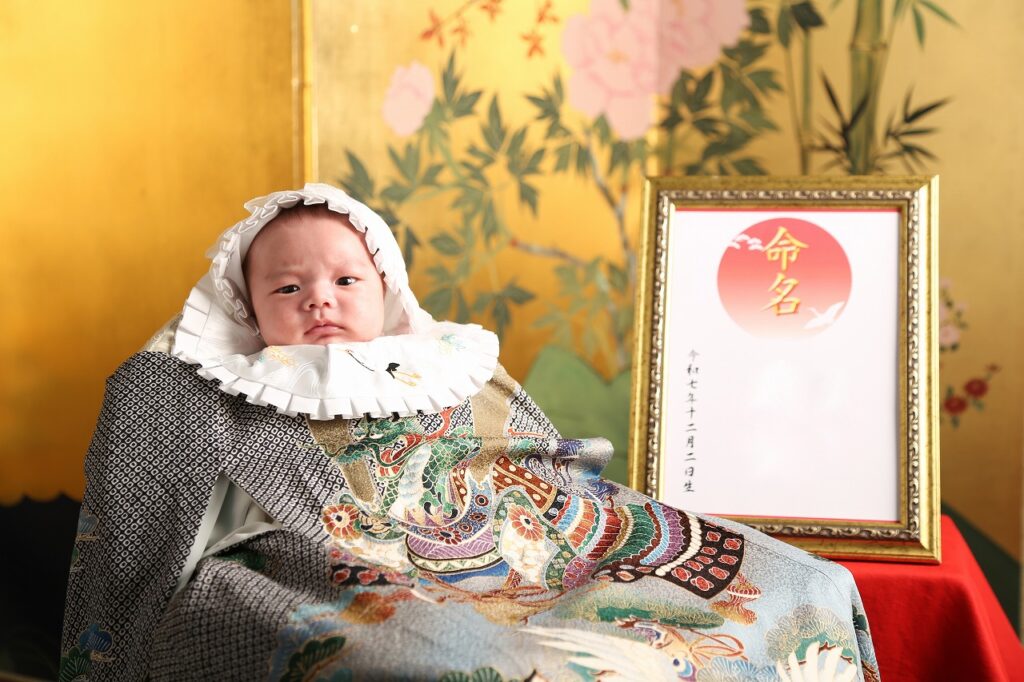 お宮参り撮影の皆様に生年月日とお名前が入った“命名書”を作らせていただきます。
