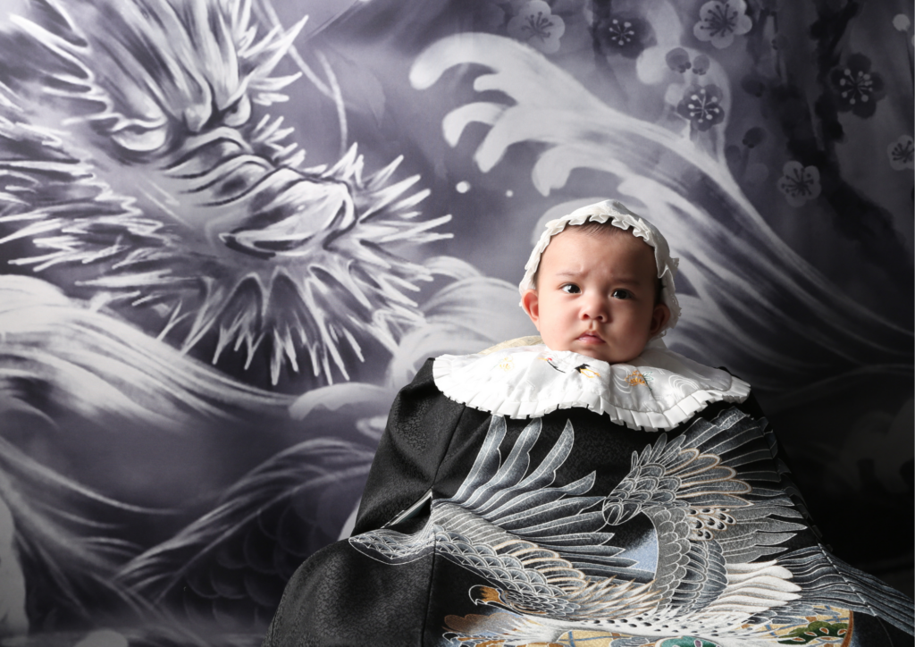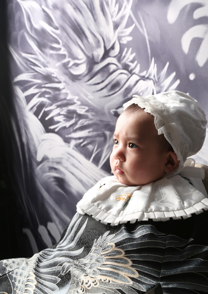 赤ちゃん撮影でいかつい龍の背景はあまり使いませんが若干きれてる感じが合いそうでしたので使わせていただました。