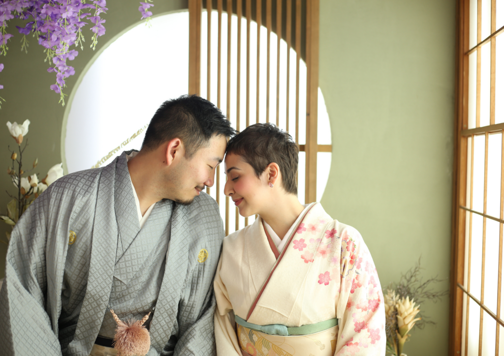 海外でお着物を着る機会は中々ないと思うので、お子様が着替えてる間にご夫婦もお撮りさせていただきました。