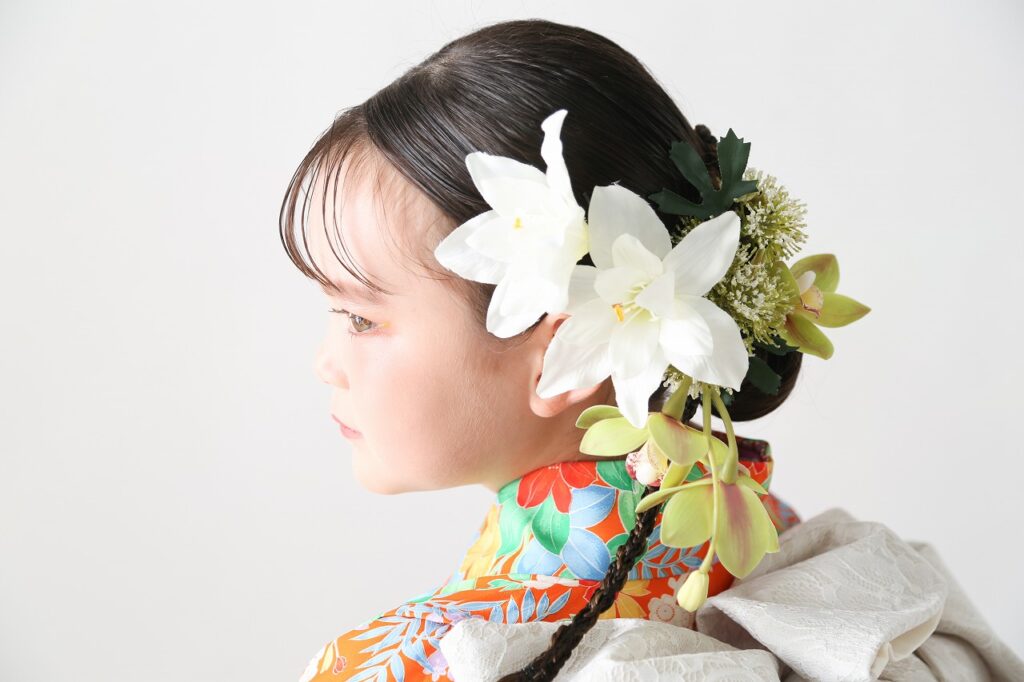 上から撮ると、髪飾りやまつ毛も目立ちます。