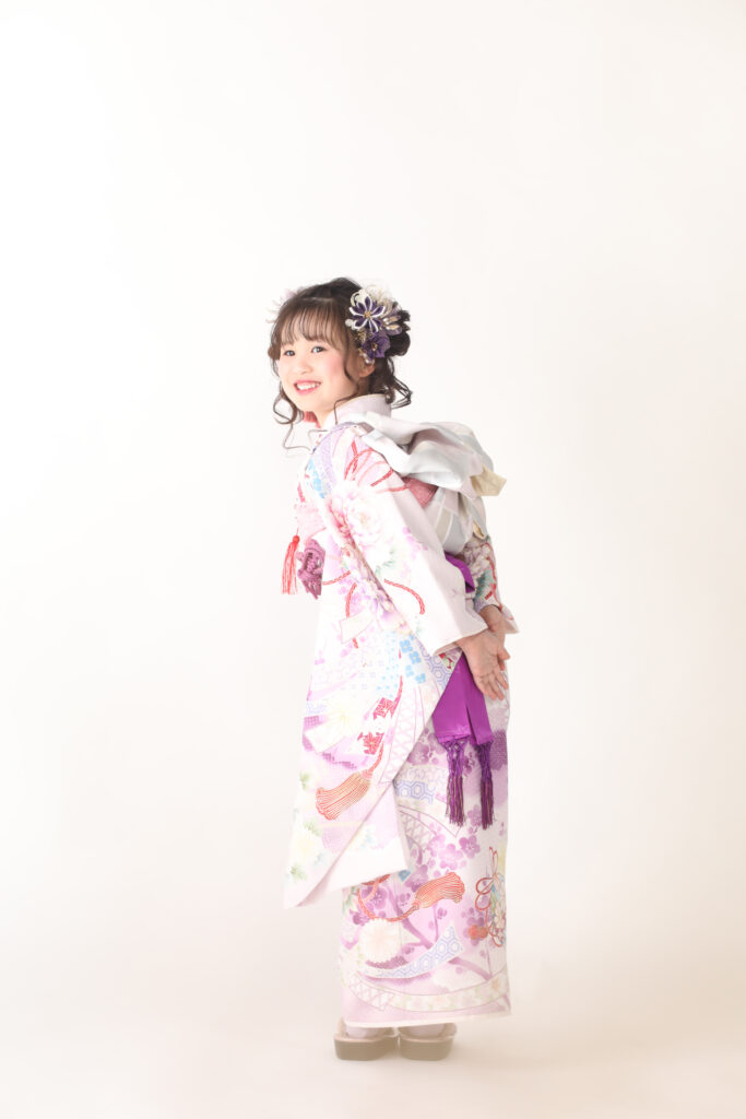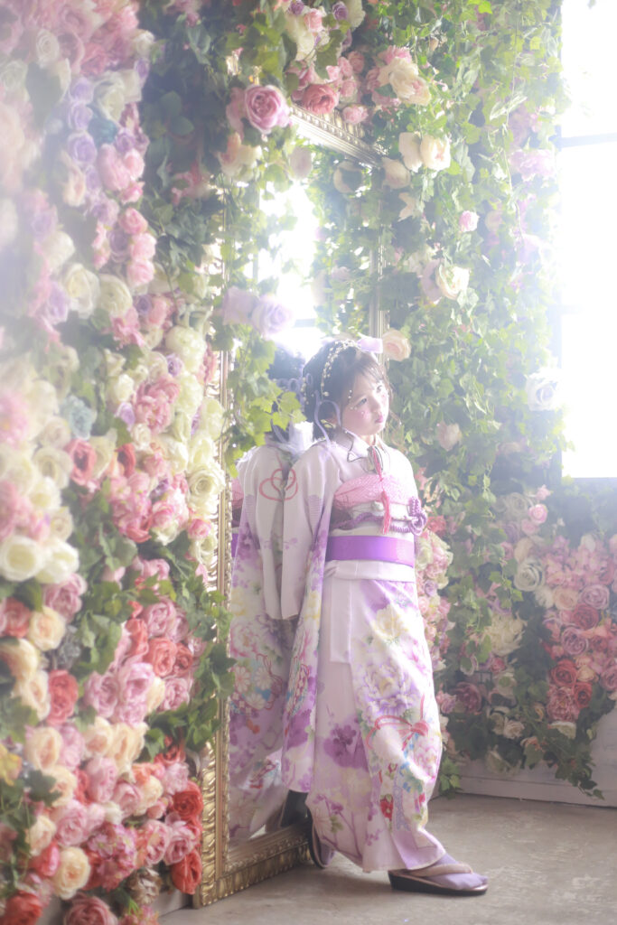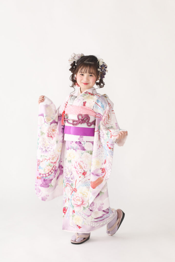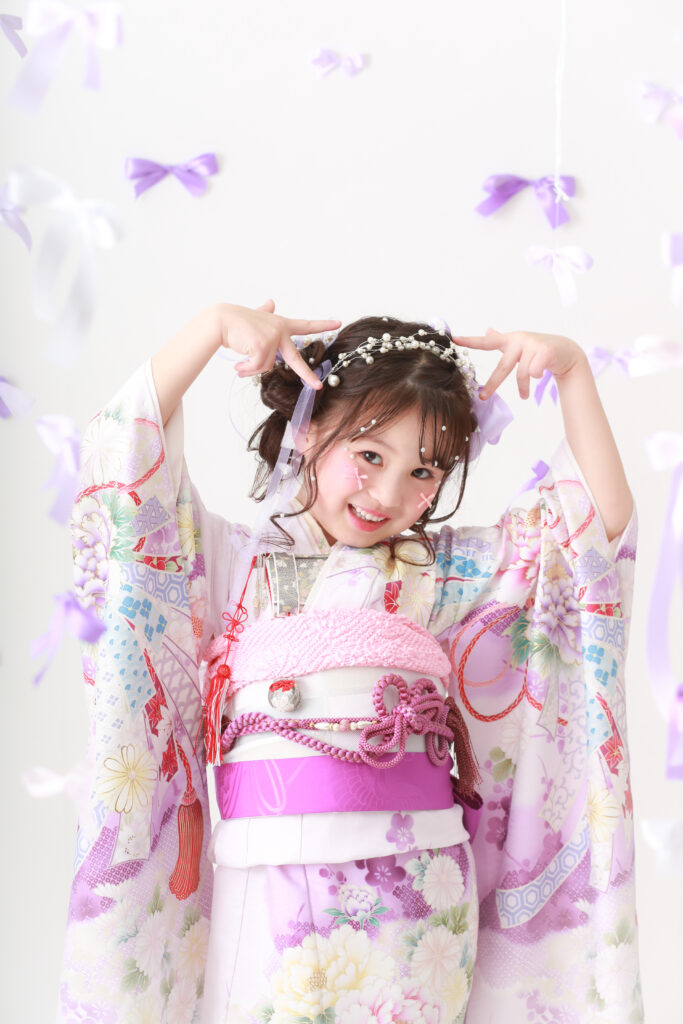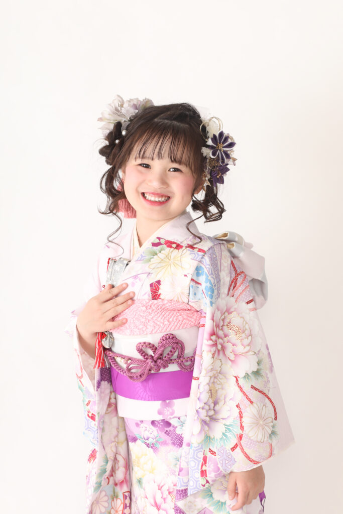 紫色大好きな7才ちゃんたちはぜひこちらの着物、着てみてください!