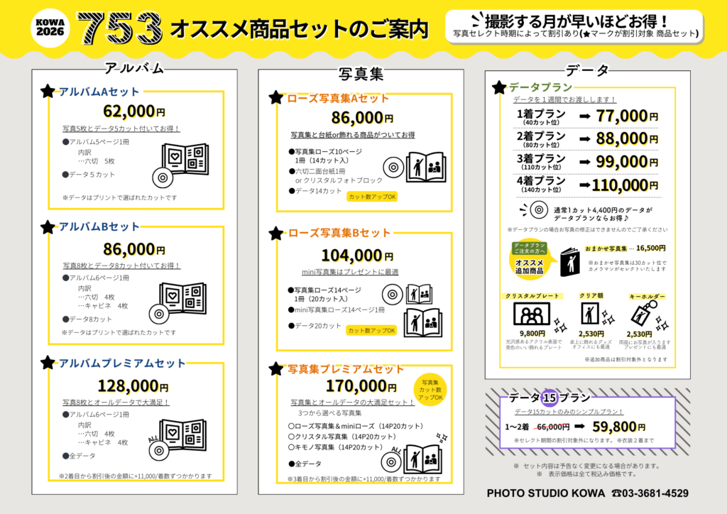 「アルバムセット」「写真集セット」「データプラン」をそれぞれご紹介いたします。
