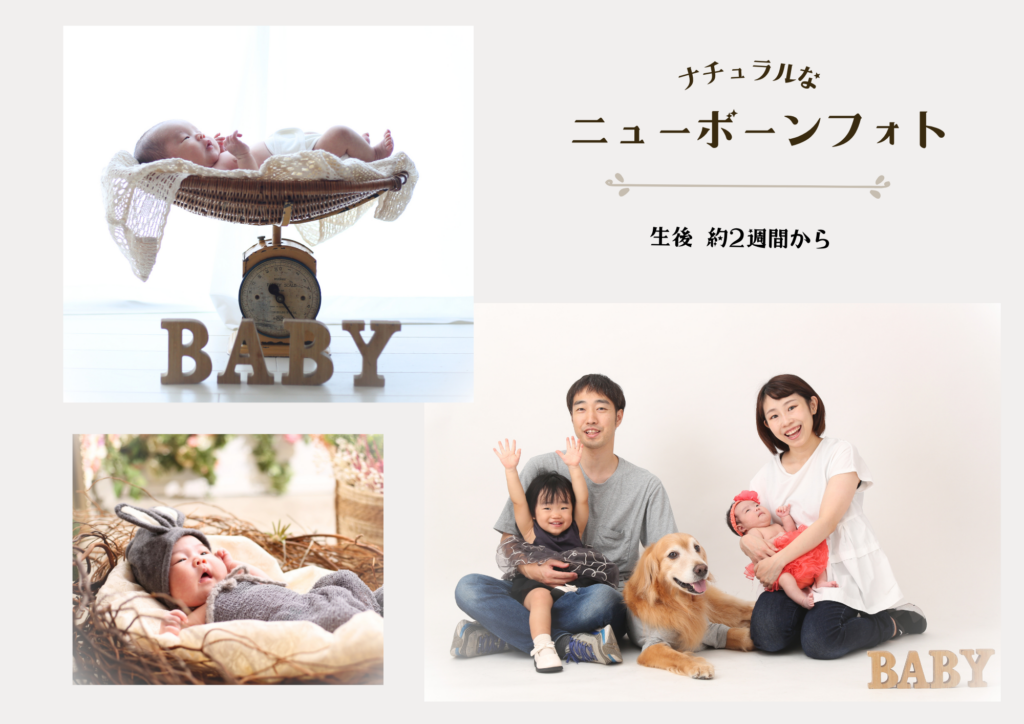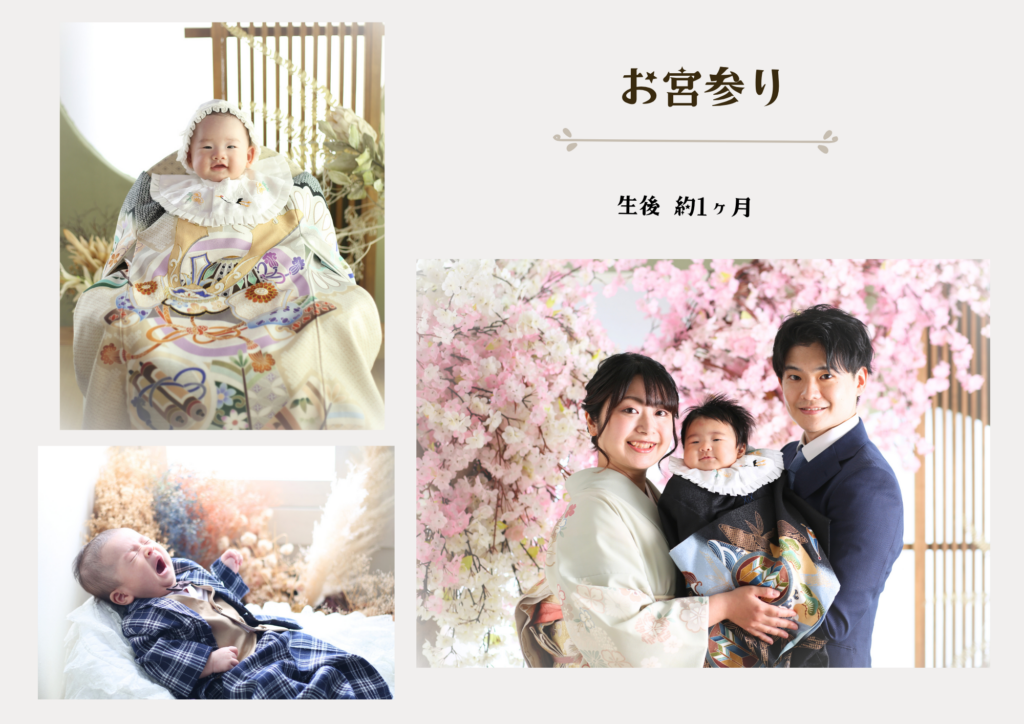 ベビーフォトはニューボーン・お宮参り・百日記念の撮影が対象です。