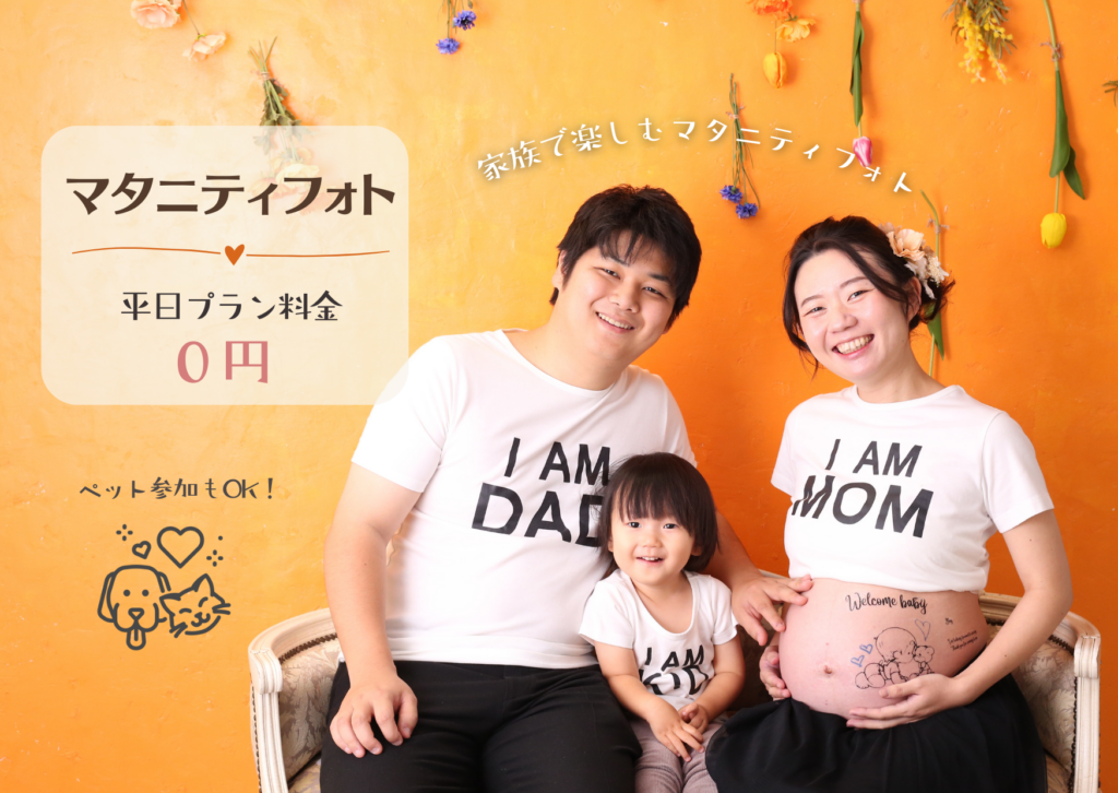 かかるのは実質商品代のみ! とてもお得にマタニティフォトをお撮りできます。