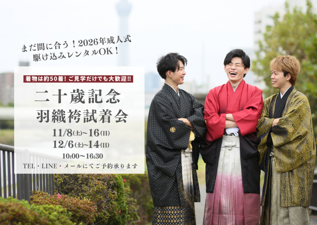 <二十歳記念>まだ間に合います!男性羽織袴試着会 開催!