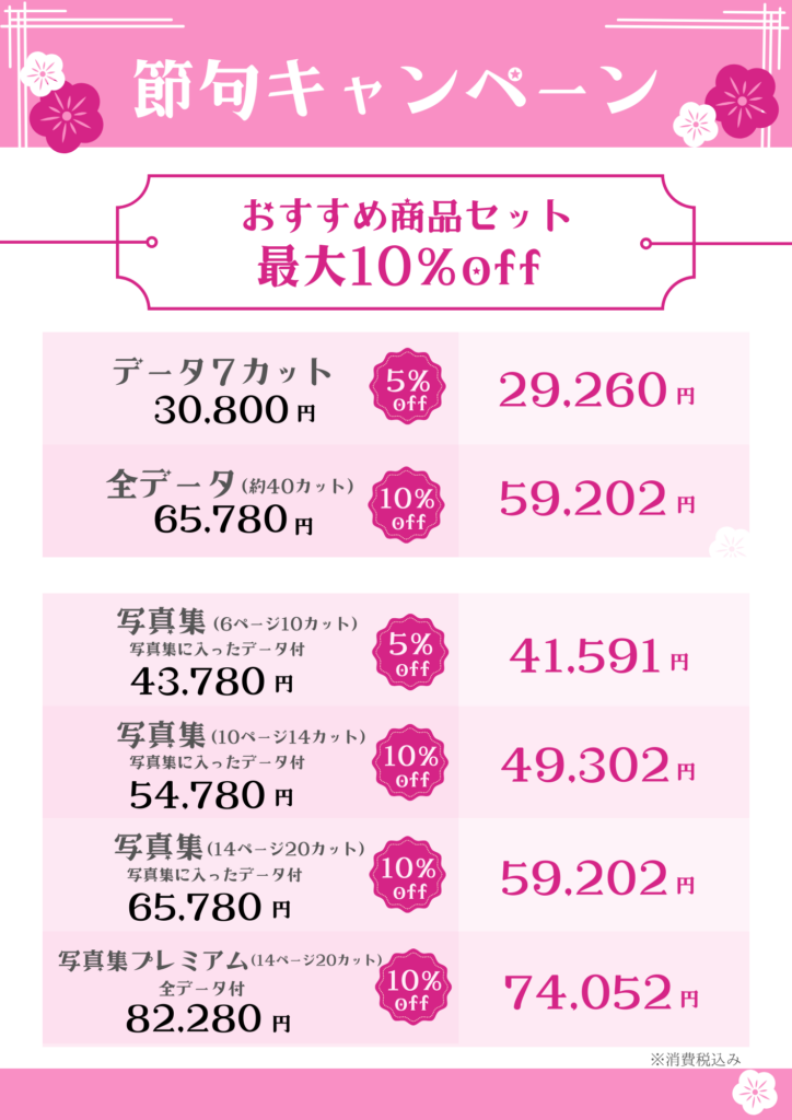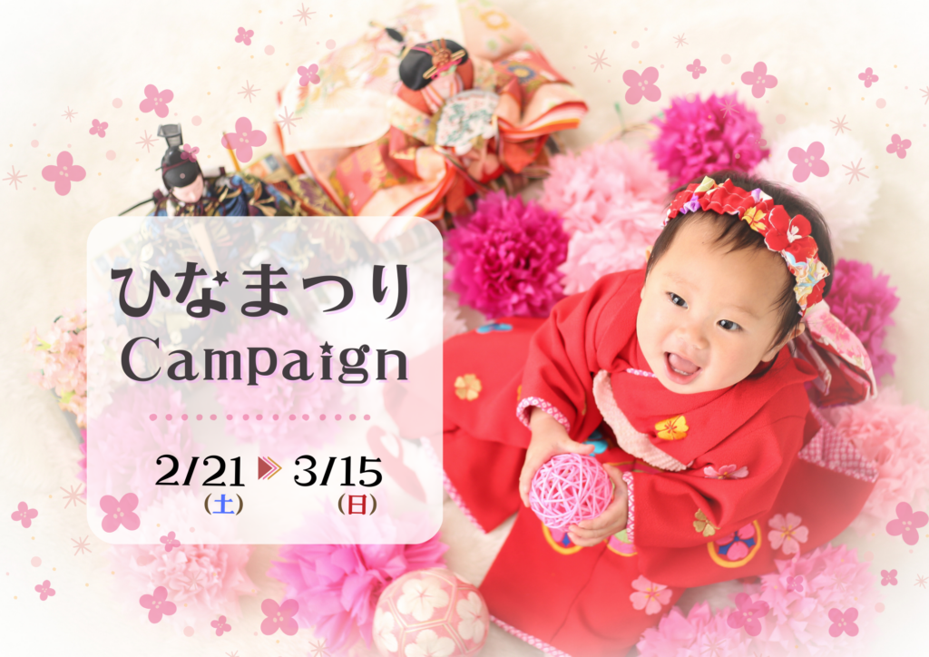 キャンペーン期間中にひなまつり(桃の節句)の撮影をしたお客様の特典です。