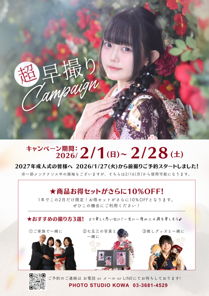 成人振袖 2月【超早撮り】キャンペーン実施します!