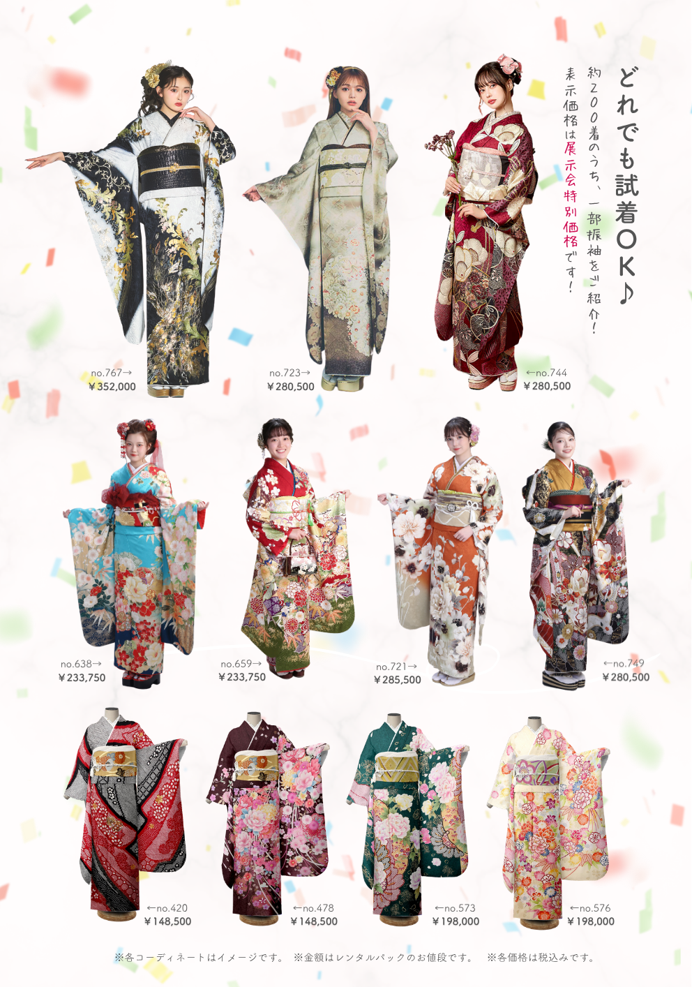 KOWAの振袖、約200着を一挙に見られる大チャンス!