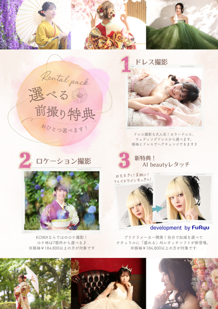 成人式当日のお支度も前撮りも込みの「振袖レンタルパック」は