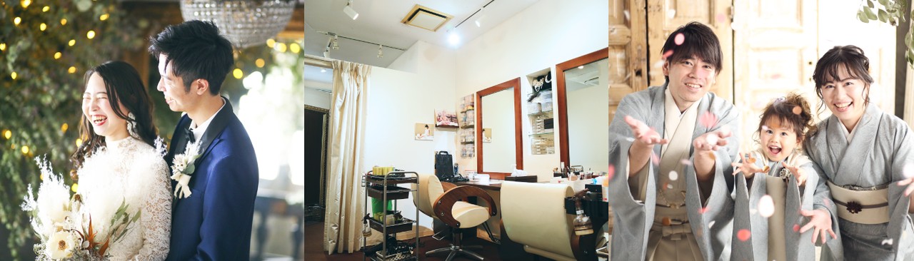業務内容 | 記念を迎えるお客様のヘアーセット、メイク、衣装合わせ等 ※ヘアーサロンではないので、カット・シャンプーは無し |
