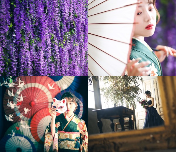 まるで外にいるかのような一面の藤、桜が満開の和室など…様々なお写真が残せて、非日常体験ができます。 -