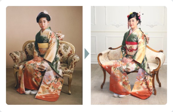 帯を今風にしたい、帯締めを色を明るくしたい、などご希望をお伝え下さい。ママ振袖も、令和風に変身!
