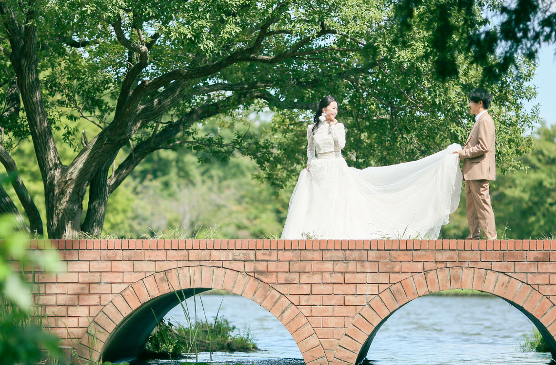 ”ここは東京?”写真だけを見ると、思わずそう言ってしまうはず。レンガ橋で撮った写真は、まるでヨーロッパの街並み、メタセコイアの森で撮った写真は、まるで北欧の世界。東京の下町とは思えないロケーションは、洋装のフォトウェディングぴったりです。