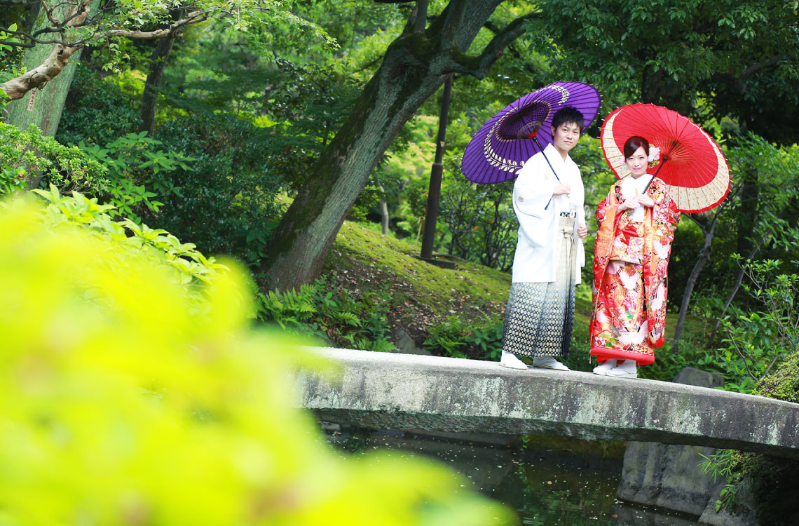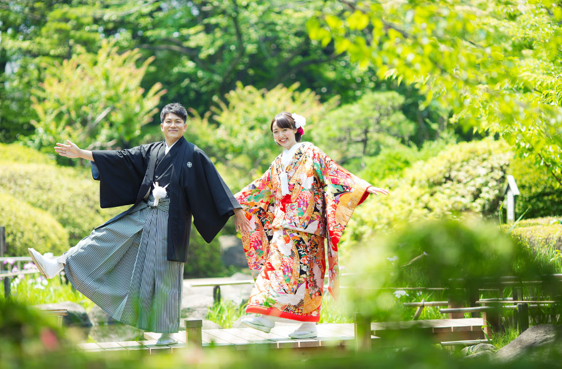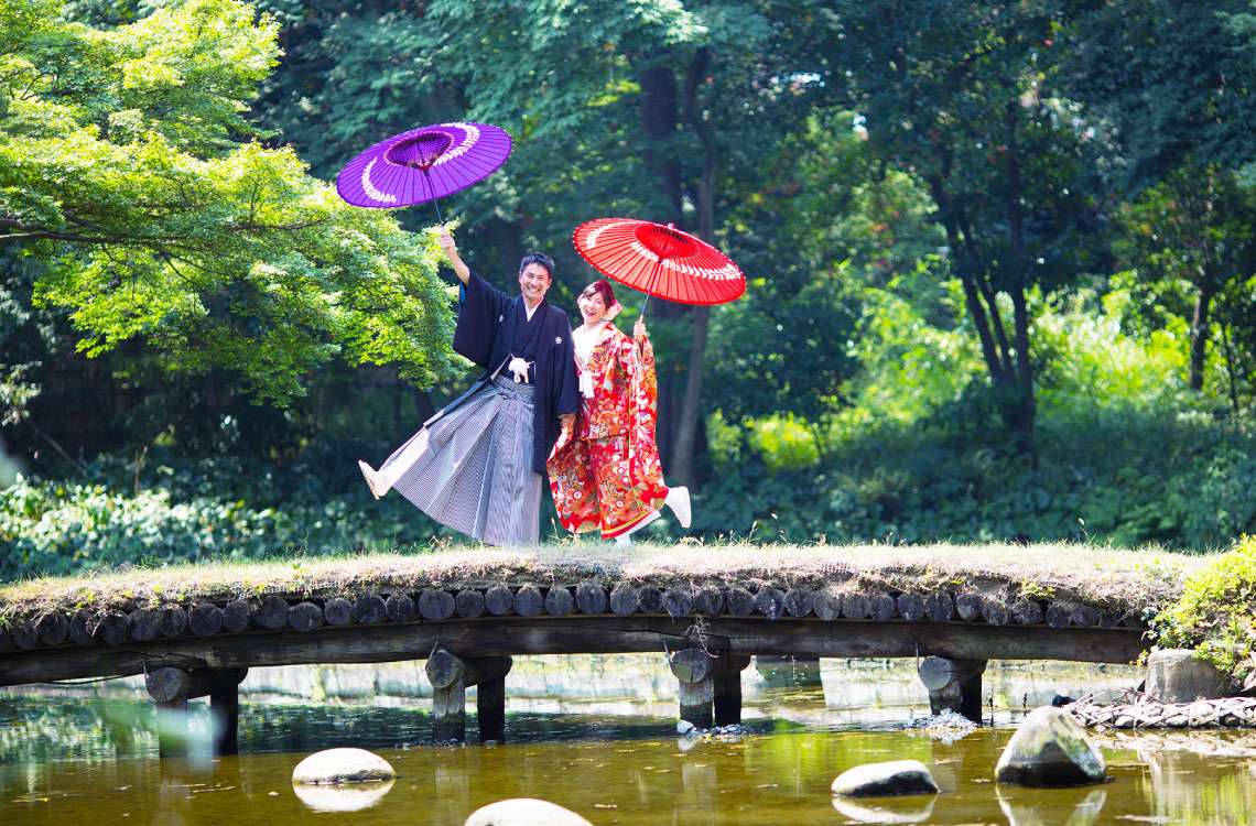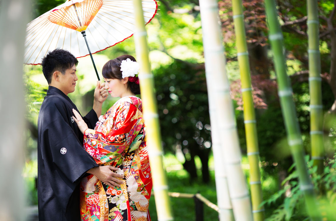 和装人気NO.1。春は桜、夏は新緑、秋は紅葉など、四季折々の自然を楽しめます。枯山水、竹林、滝、橋など撮り所は満載。都内にいながら、まるで京都にいるような写真が撮れます。人気があるので、ご希望の方は早めの予約がおススメです。