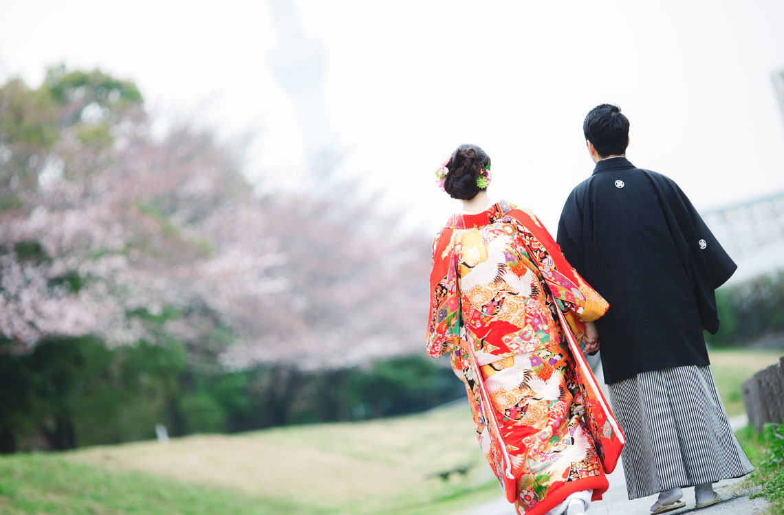 桜ロケーション撮影をご希望の方にオススメ!3月末~4月上旬が見頃。ソメイヨシノが川沿いに咲き誇ります。なんと土日祝日も撮影も可能!撮影許可が取りやすいのも◎。冬の紅葉も和装ウェディングにぴったりです。車で10分程度なので、アクセスも抜群! 晴天の日は東京スカイツリーも写ります。